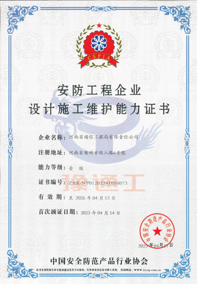 電子與智能化、建筑裝修裝飾、消防設施工程專業承包壹級;鋼結構工程專業承包貳級;建筑工程、電力工程、機電工程、城市及道路照明工程專業施工總承包叁級;施工勞務不分等級。
